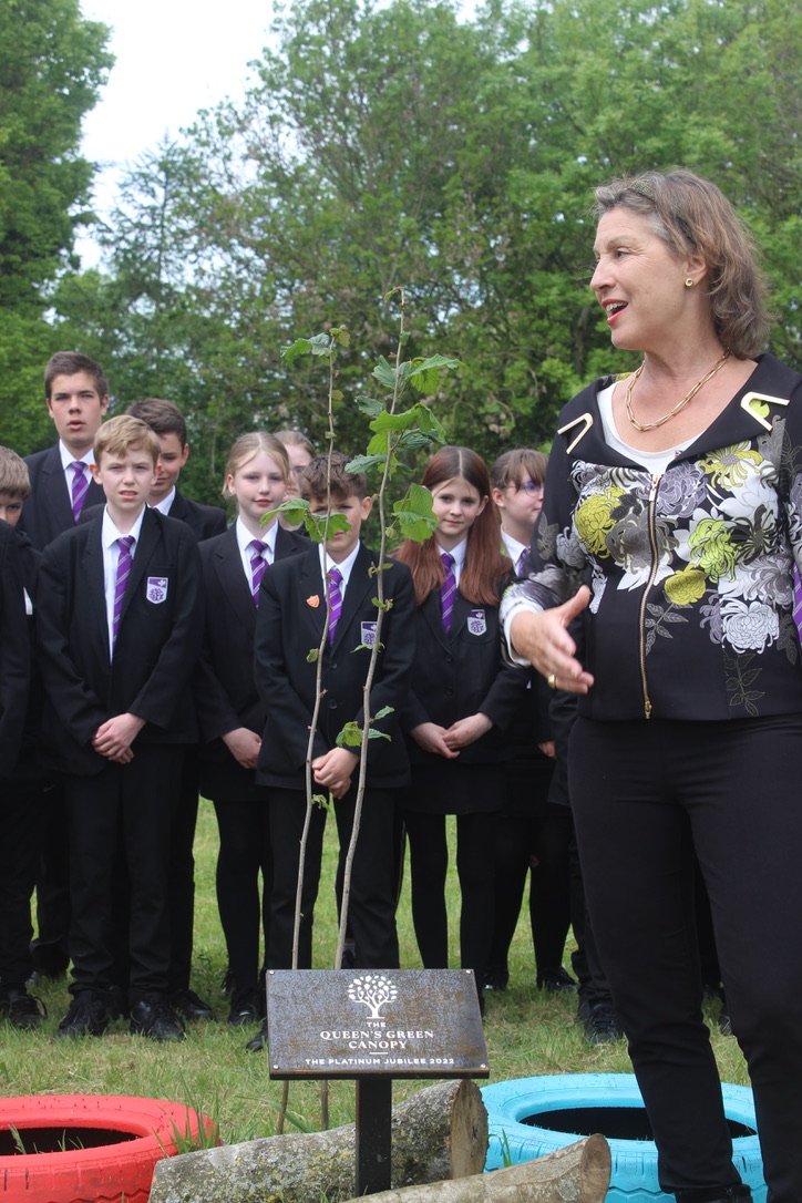 On Friday 13th May Head Teacher John Eddy and Forest School Leader Tamara Dixon led a special planting ceremony, along with Rebecca Pow MP and her assistant Michael Asher. Mrs Pow said: “I was proud to unveil the hazel tree planted for the Queen’s Canopy with the British Legion. What a wonderful Forest School at Pyrland School.”
